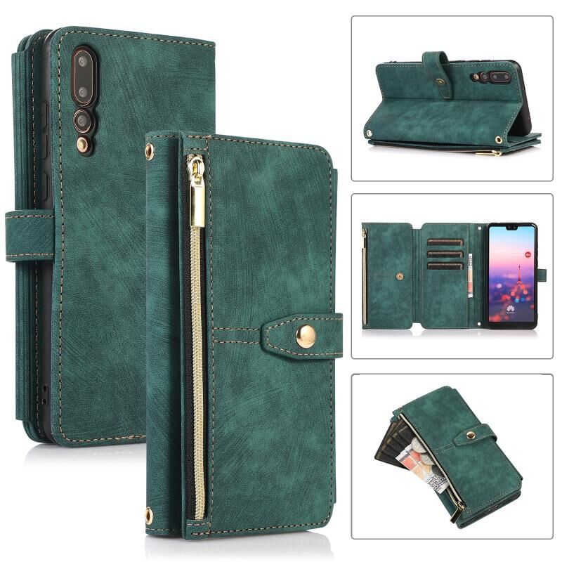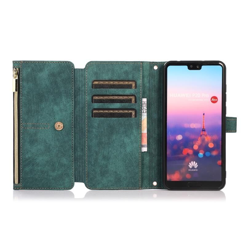 Για Huawei P20 Pro Dream 9-κάρτα πορτοφόλι φερμουάρ τσάντα δερμάτινη θήκη τηλεφώνου (πράσινο)