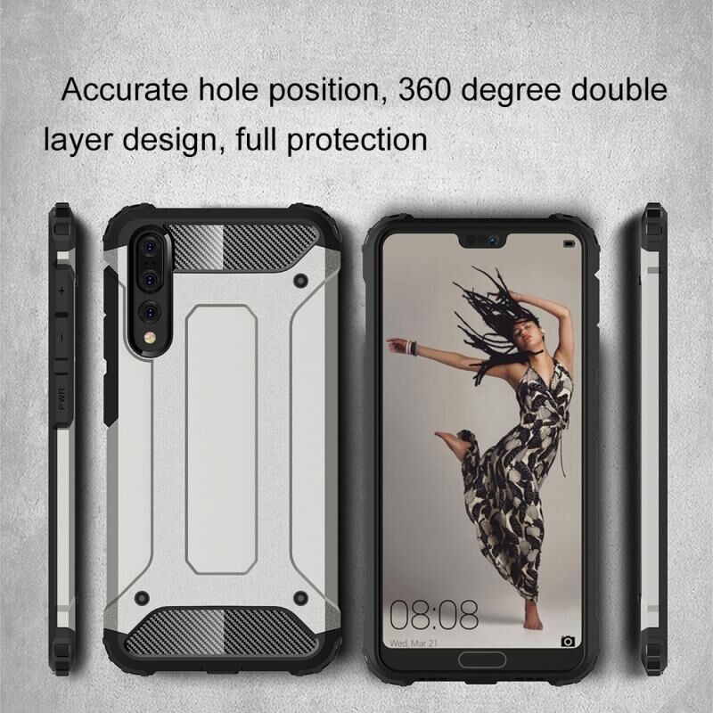 For Huawei P20 Pro Full-body Rugged TPU + PC Combination Back Cover Case (Grey)