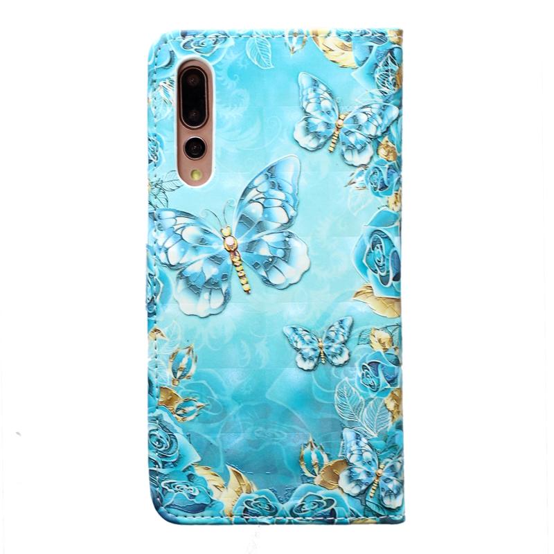 For Huawei P20 Pro Oil Embossed 3D Drawing Leather Phone Case(Blue Butterflies)