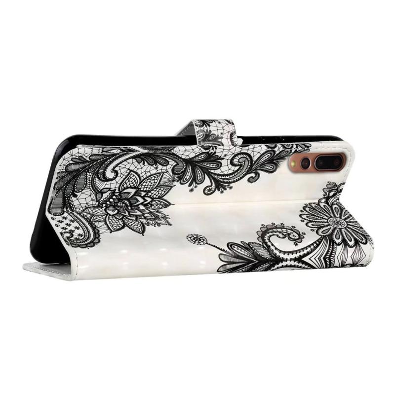 For Huawei P20 Pro Oil Embossed 3D Drawing Leather Phone Case(Lace Flower)