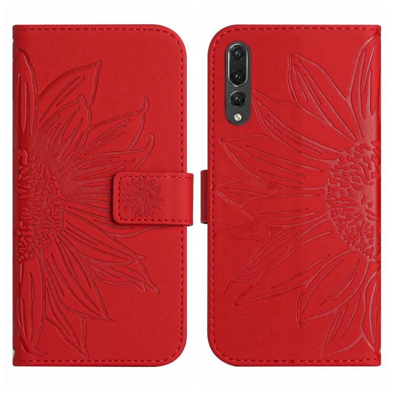 Θήκη τηλεφώνου Huawei P20 Pro με δερμάτινη υφή, σχέδιο ηλίανθου, τύπου flip με κορδόνι (Κόκκινο)