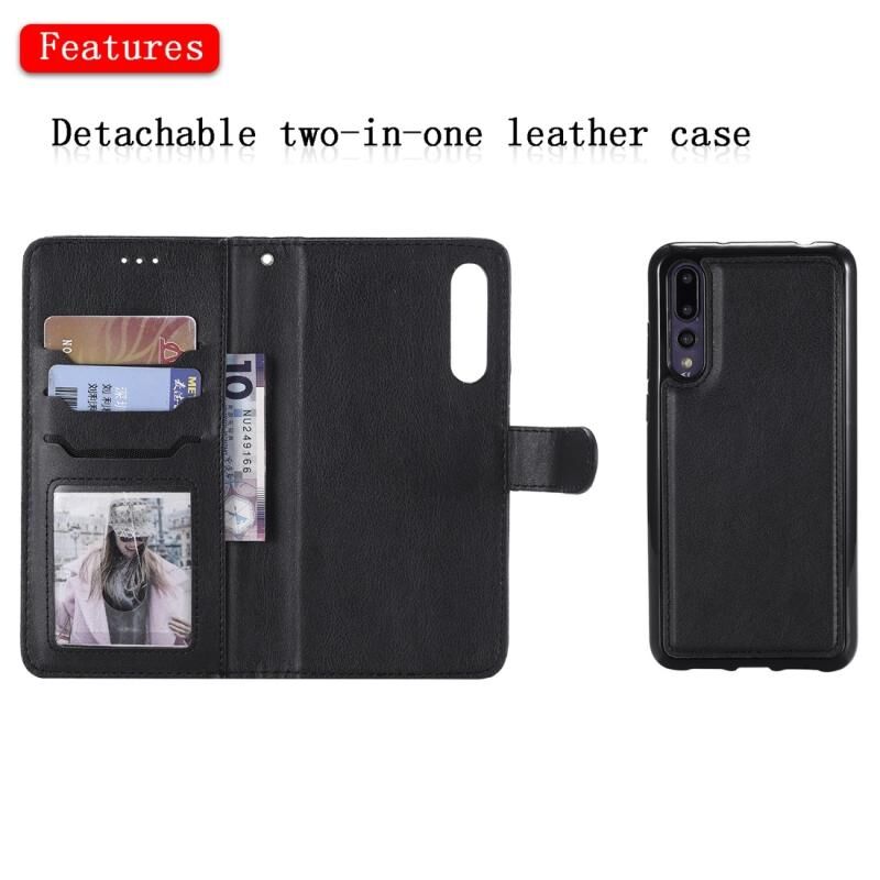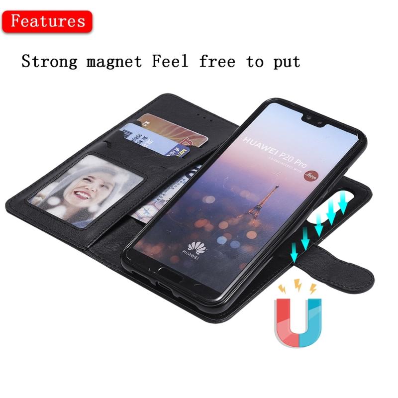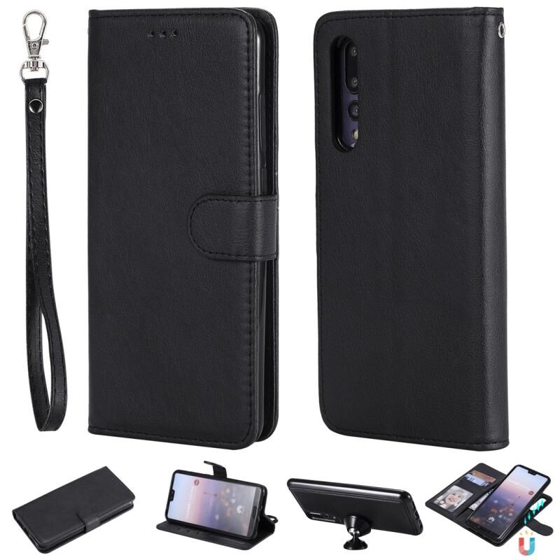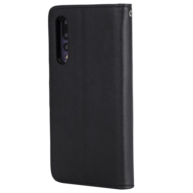 Θήκη προστασίας οριζόντιας αναδίπλωσης για Huawei P20 Pro, μονόχρωμη, με βάση στήριξης, θήκες καρτών, πορτοφόλι, κορνίζα φωτογραφιών & λουρί (Μαύρο)