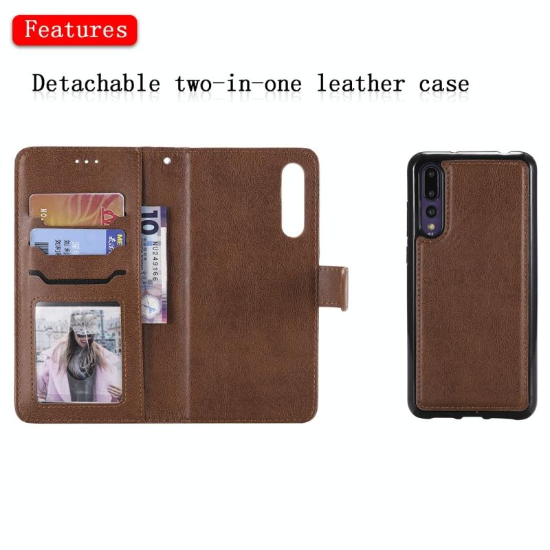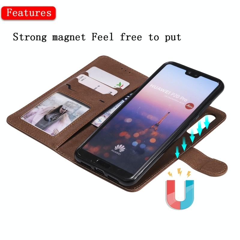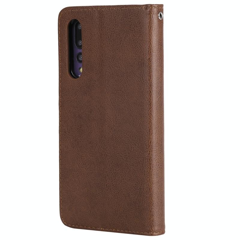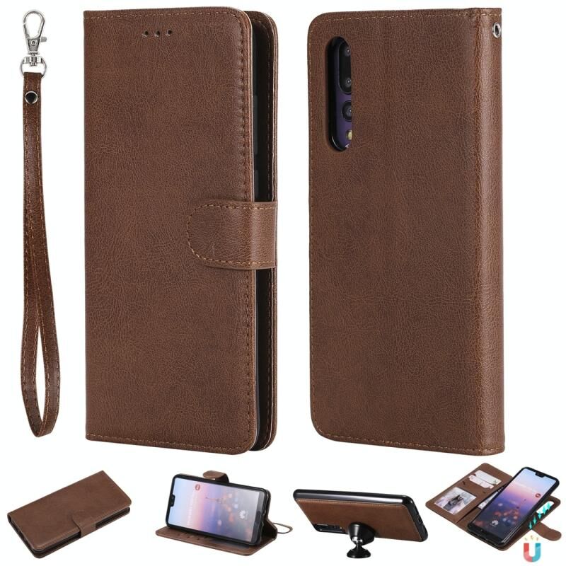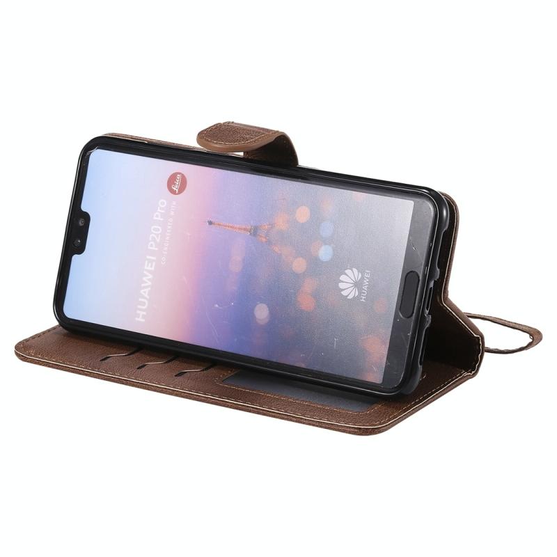Θήκη προστασίας οριζόντιας αναδίπλωσης για Huawei P20 Pro, μονόχρωμη, με βάση στήριξης, θήκες καρτών, πορτοφόλι, κορνίζα φωτογραφιών & λουρί (Καφέ)