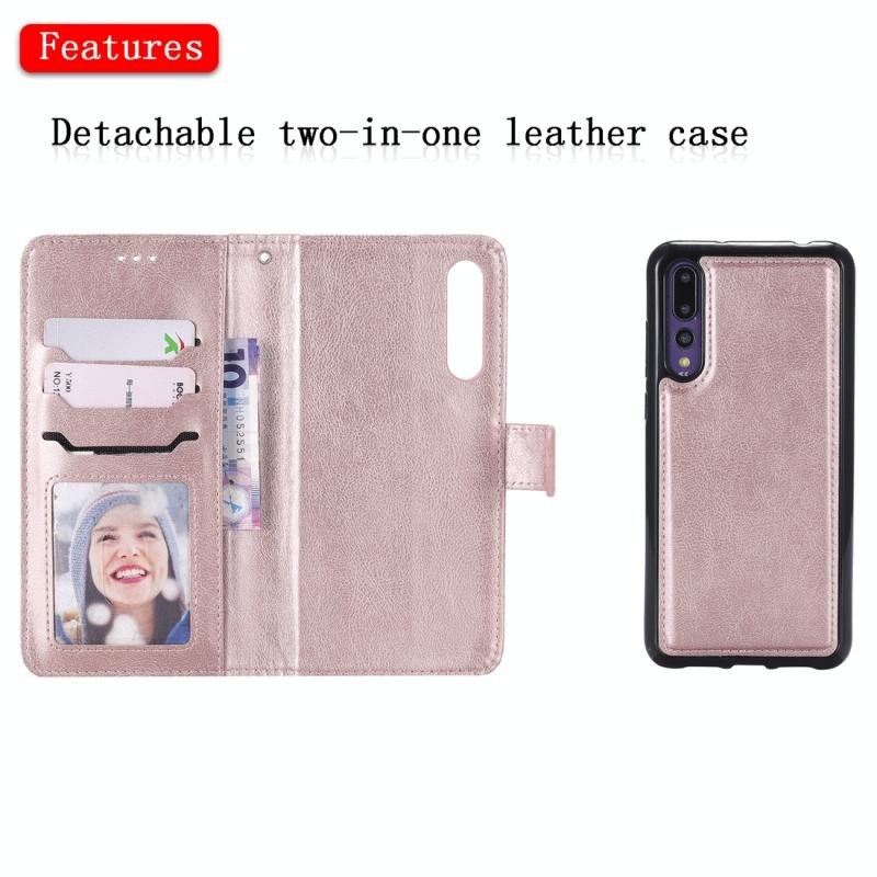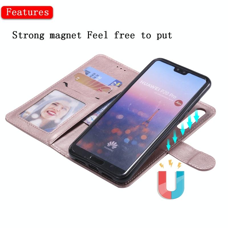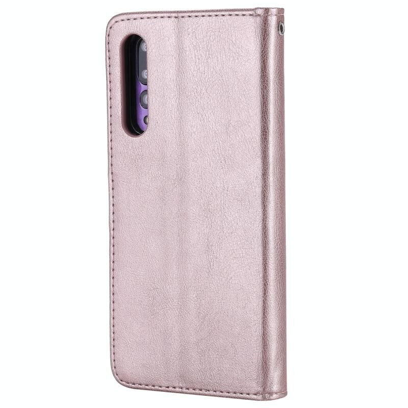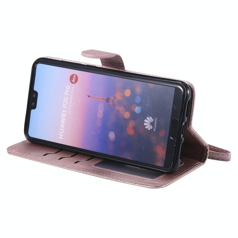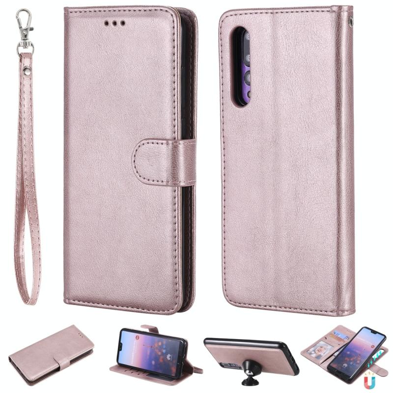 Θήκη προστασίας οριζόντιας αναδίπλωσης για Huawei P20 Pro, μονόχρωμη, με βάση στήριξης, θήκες καρτών, πορτοφόλι, κορνίζα φωτογραφιών & λουρί (Ροζ χρυσός)