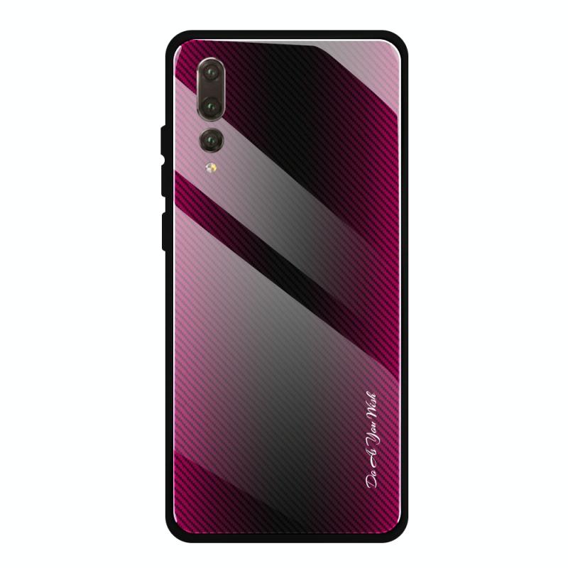 For Huawei P20 Pro Texture Gradient Glass Protective Case(Rose Red)