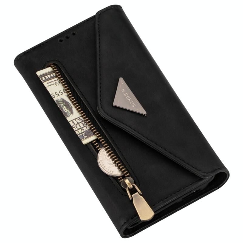 For Huawei P20 Skin Feel Zipper Horizontal Flip Leather Case with Holder & Card Slots & Photo Frame & Lanyard & Long Rope(Black)