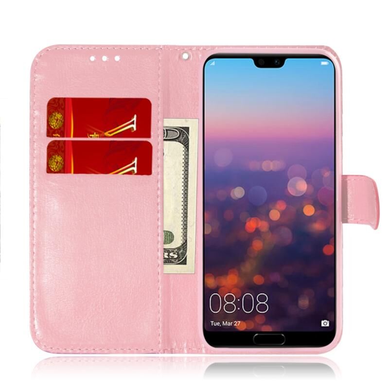 Για Huawei P20 Αμιγές χρώμα πολύχρωμο μαγνητικό πόρπη οριζόντια Flip PU δέρμα υπόθεση με κάτοχο & υποδοχές καρτών & πορτοφόλι & Lanyard (ροζ)