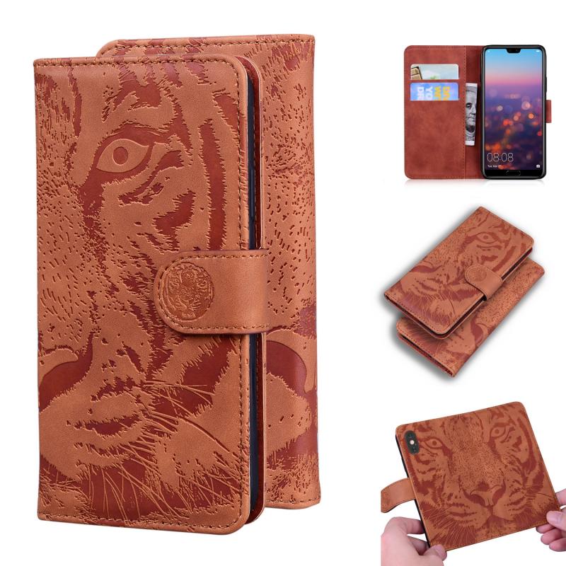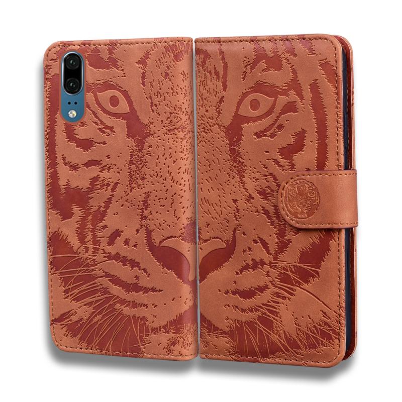 For Huawei P20 Tiger Embossing Pattern Horizontal Flip Leather Case with Holder & Card Slots & Wallet(Brown)