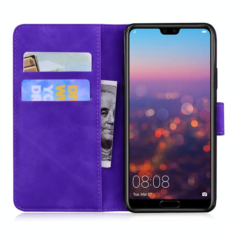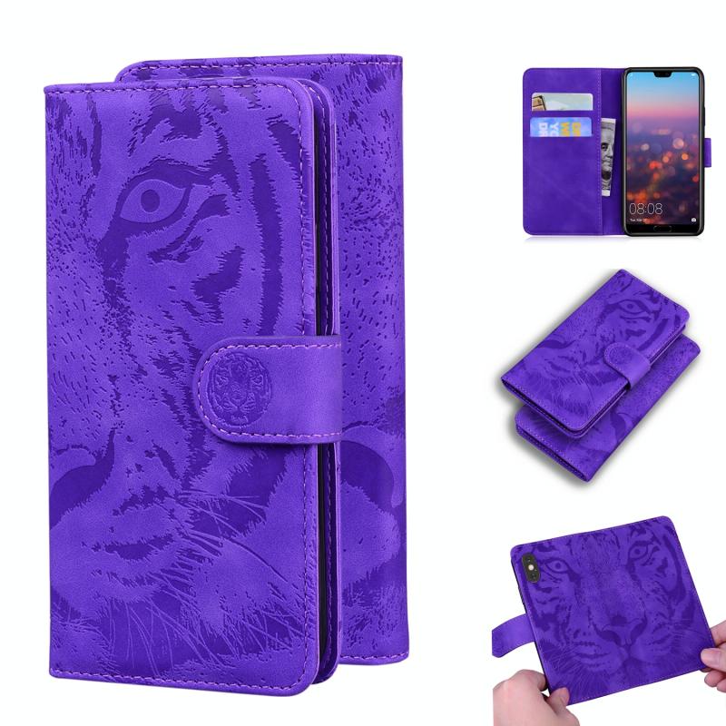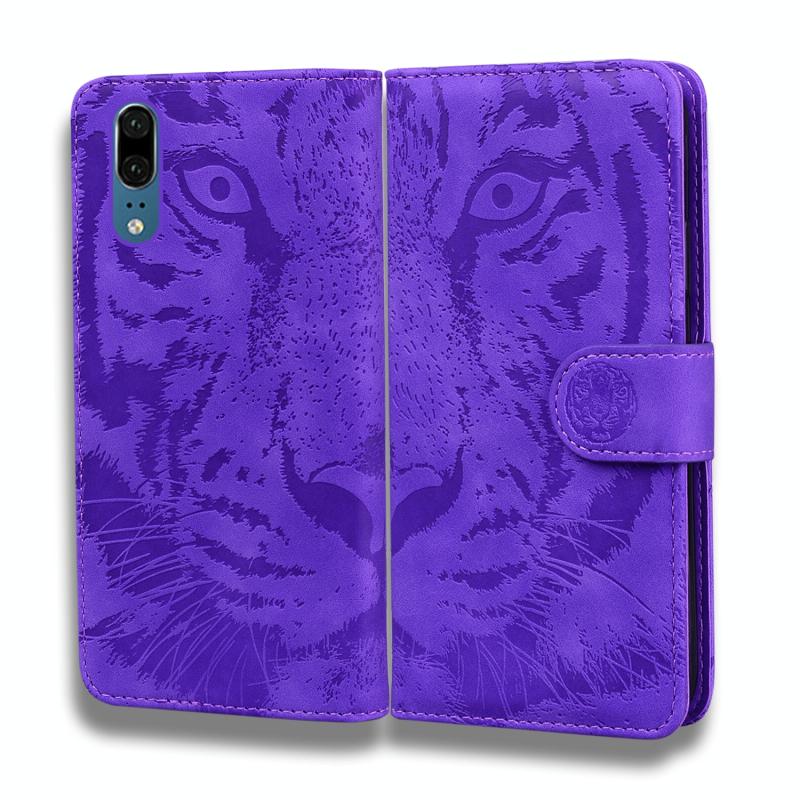 For Huawei P20 Tiger Embossing Pattern Horizontal Flip Leather Case with Holder & Card Slots & Wallet(Purple)