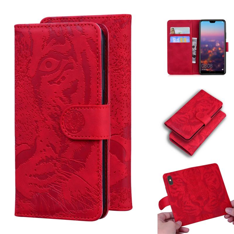 For Huawei P20 Tiger Embossing Pattern Horizontal Flip Leather Case with Holder & Card Slots & Wallet(Red)