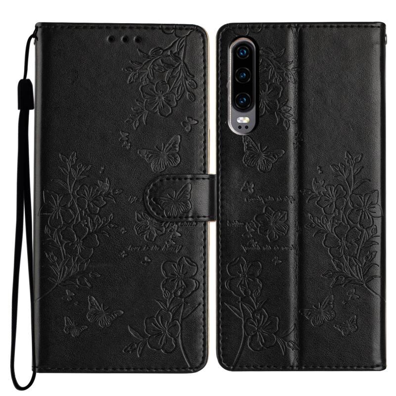 Θήκη τηλεφώνου Huawei P30 Πεταλούδες Και Λουλούδια Δερμάτινη (Χρυσό)