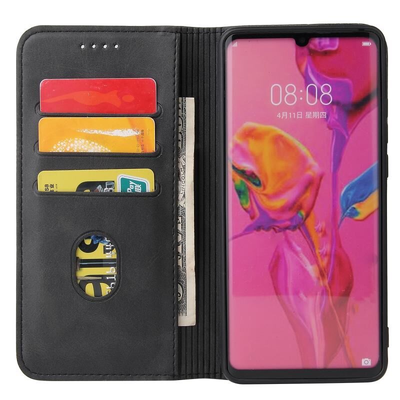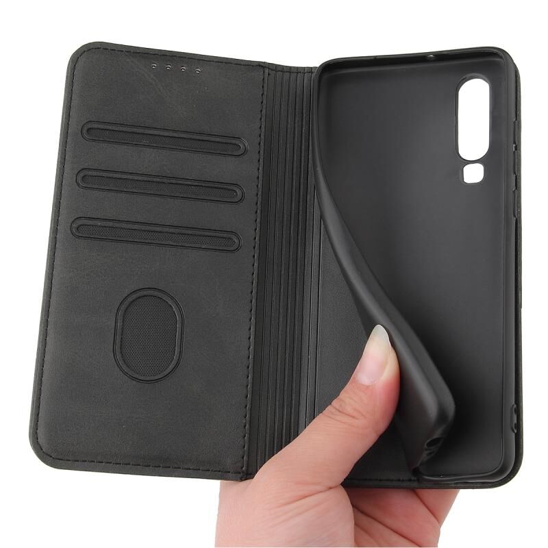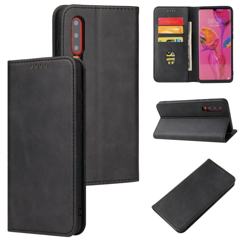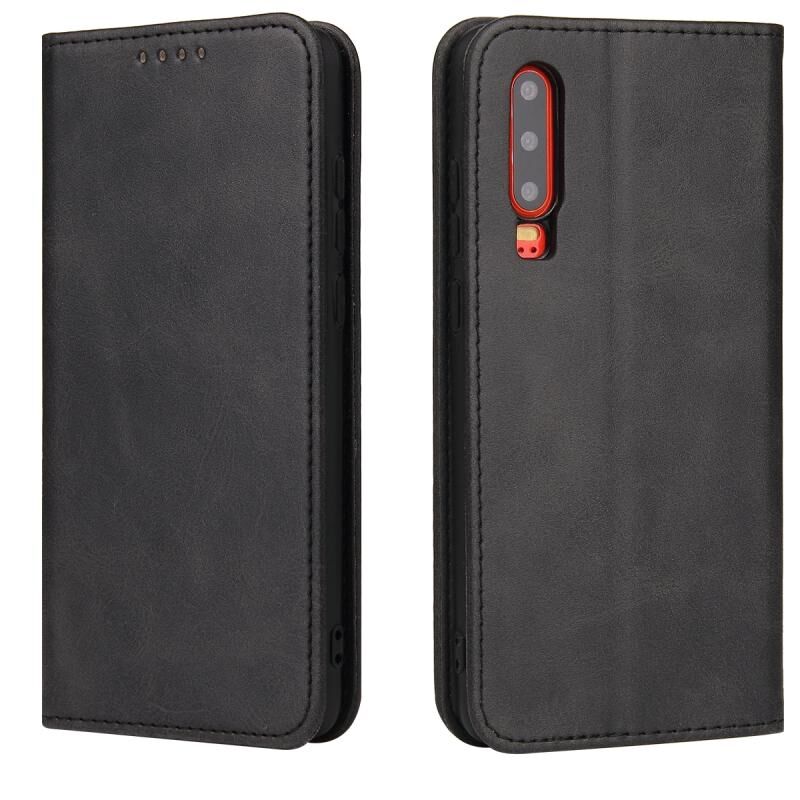 Για Huawei P30 Calf Texture Μαγνητική οριζόντια Flip δερμάτινη θήκη με θήκη & υποδοχές για κάρτες & πορτοφόλι (Μαύρο)