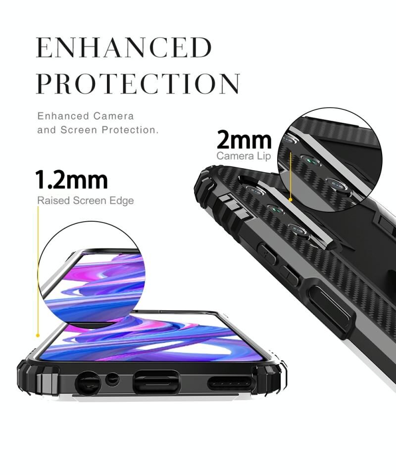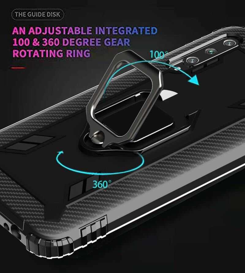 Για Huawei P30 Carbon Fiber Προστατευτική θήκη με 360 μοίρες περιστρεφόμενη θήκη δακτυλίου (Μαύρο)