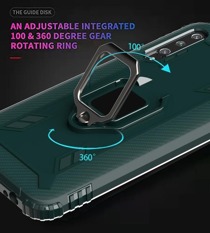 Για Huawei P30 Carbon Fiber Προστατευτική θήκη με 360 μοίρες περιστρεφόμενο δαχτυλίδι κάτοχος (πράσινο)
