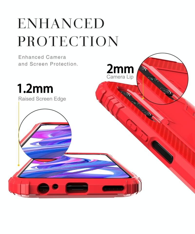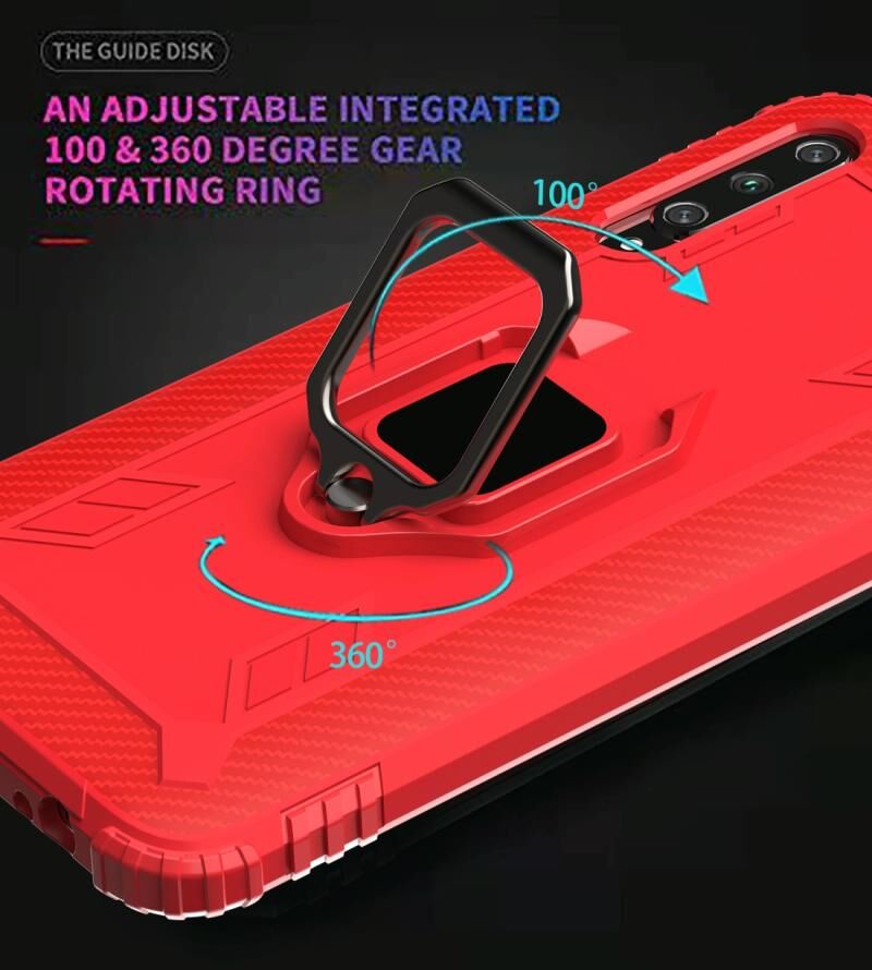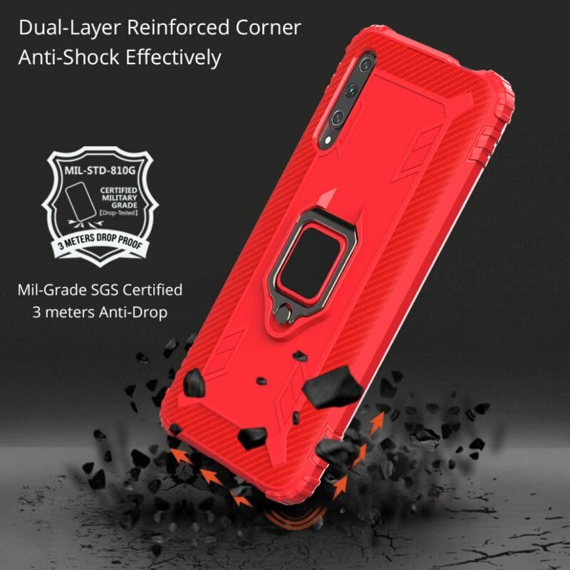 Για Huawei P30 Carbon Fiber Προστατευτική θήκη με 360 μοίρες περιστρεφόμενη θήκη δακτυλίου (κόκκινο)