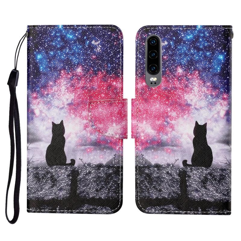 Θήκη δέρματος οριζόντιας αναδίπλωσης με σχέδιο πολύχρωμης ζωγραφικής για Huawei P30 με βάση στήριξης & υποδοχές καρτών & πορτοφόλι & κορδόνι (Αστρόγατα)
