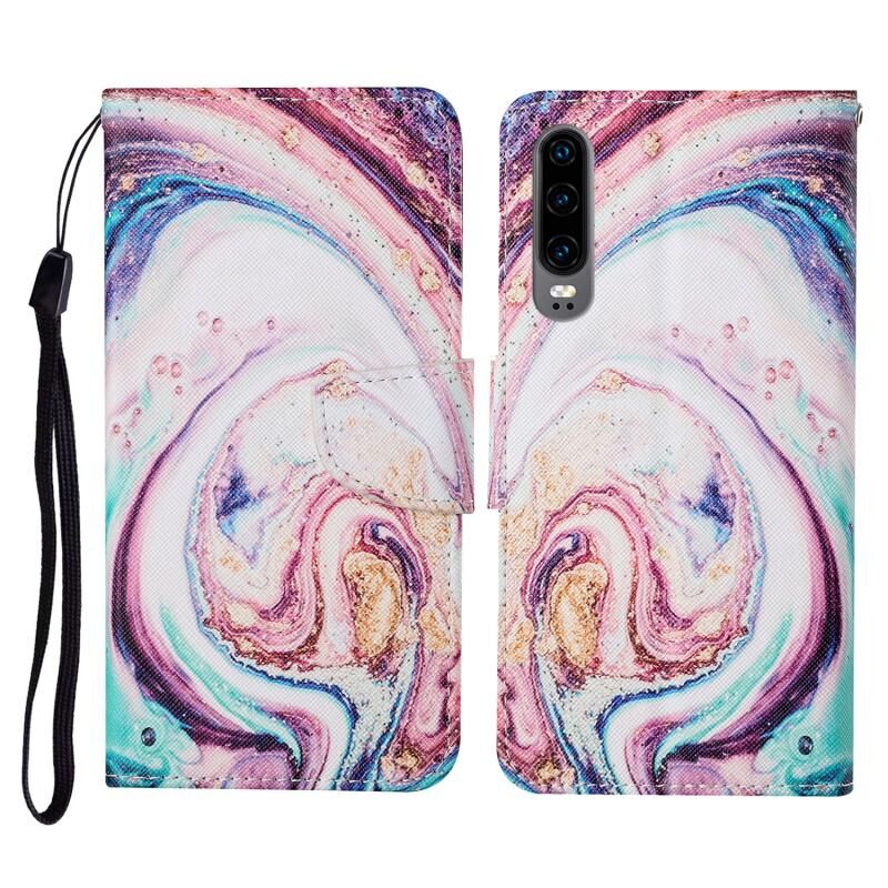 Θήκη δέρματος οριζόντιας αναδίπλωσης με σχέδιο πολύχρωμης ζωγραφικής για Huawei P30 με βάση στήριξης & υποδοχές καρτών & πορτοφόλι & κορδόνι (Μαρμάρινο Στροβιλισμός)