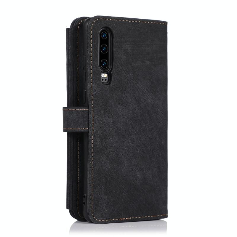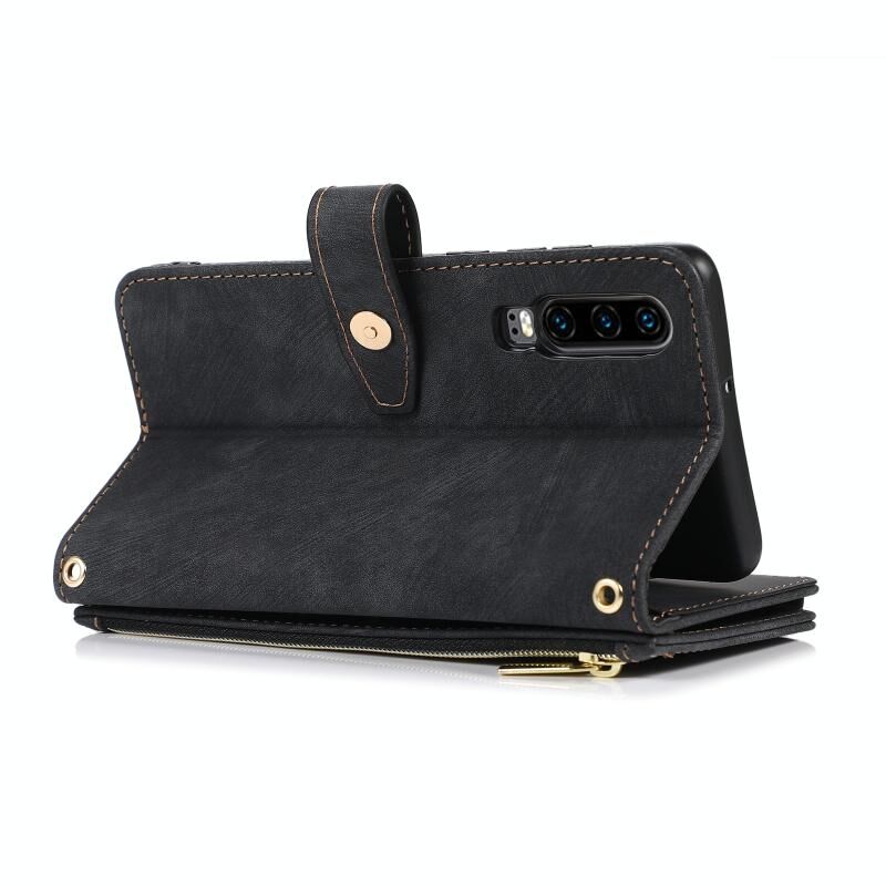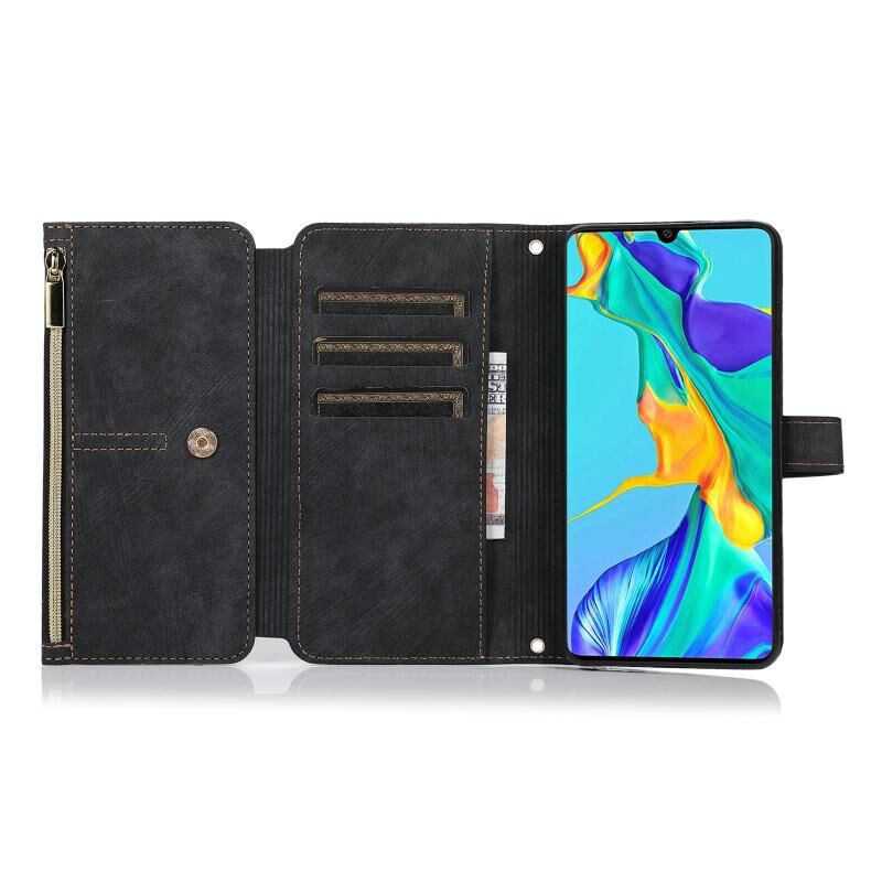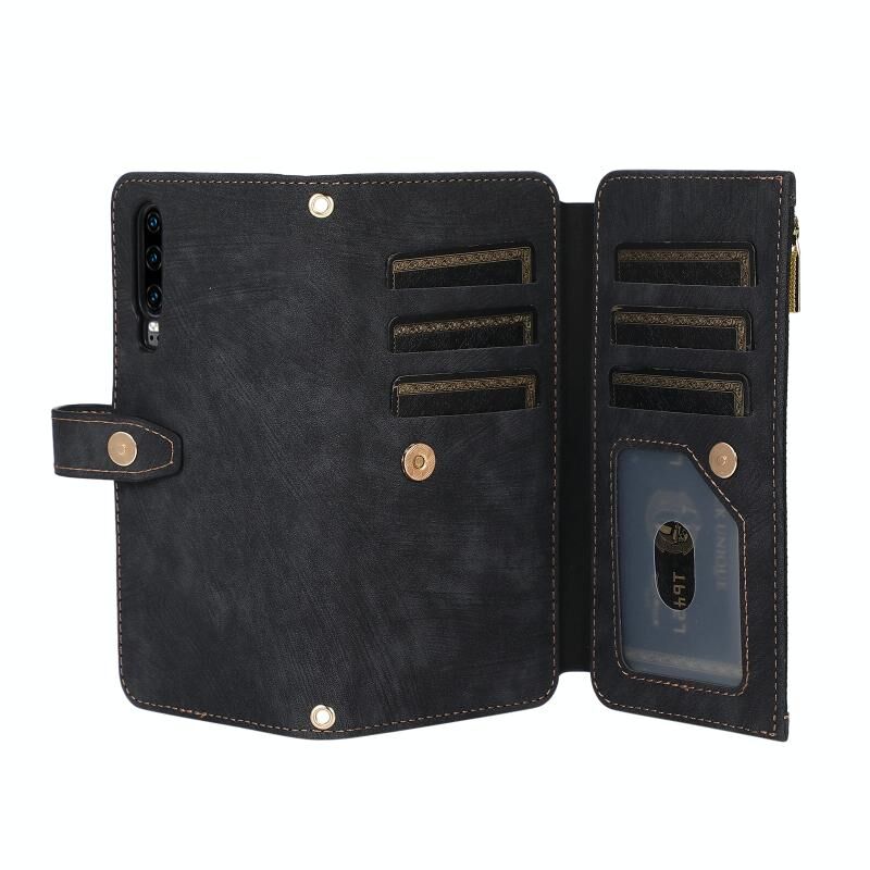 Για Huawei P30 Dream 9-κάρτα πορτοφόλι φερμουάρ τσάντα δερμάτινη θήκη τηλεφώνου (μαύρο)