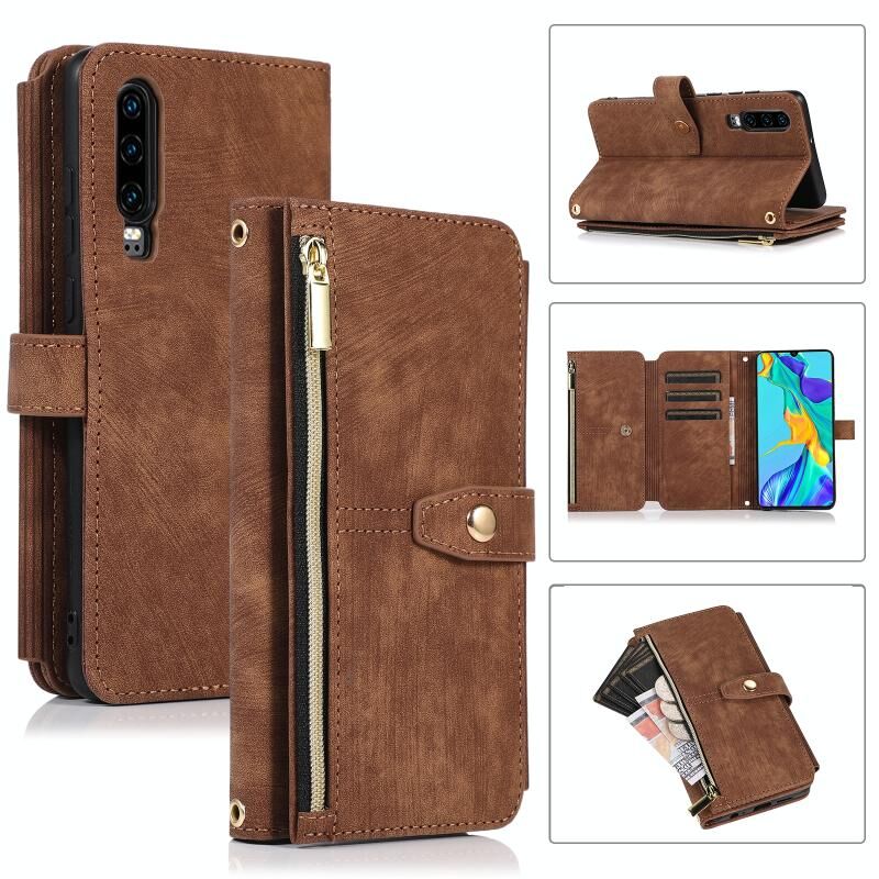 Για Huawei P30 Dream 9-κάρτα πορτοφόλι φερμουάρ τσάντα δερμάτινη θήκη τηλεφώνου (καφέ)