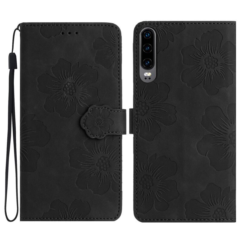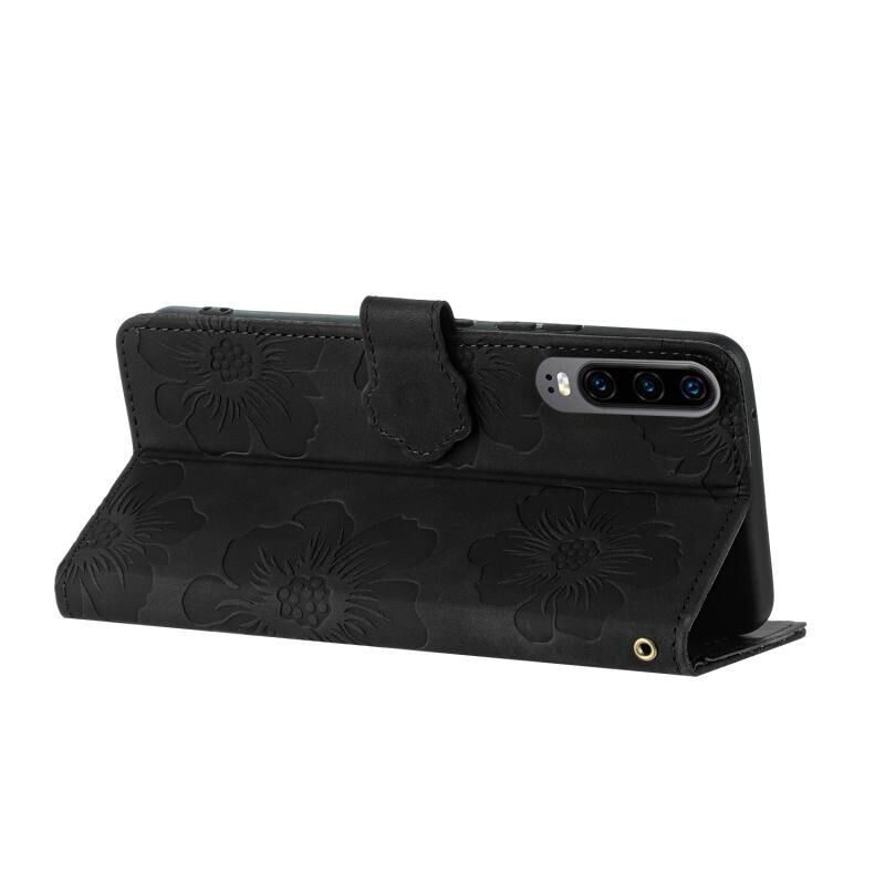 Για Huawei P30 λουλούδι ανάγλυφο μοτίβο δερμάτινη θήκη τηλεφώνου (μαύρο)