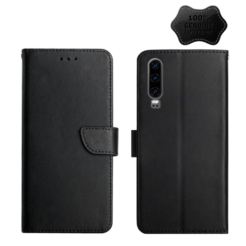 For Huawei P30 Genuine Leather Fingerprint-proof Horizontal Flip Phone Case(Black)