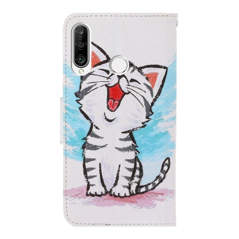 Θήκη Huawei P30 Lite 3D με έγχρωμο σχέδιο, οριζόντια αναδίπλωση από δερματίνη PU με βάση & υποδοχές καρτών & πορτοφόλι (Κόκκινο Στόμα Γάτας)