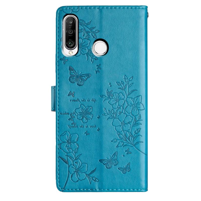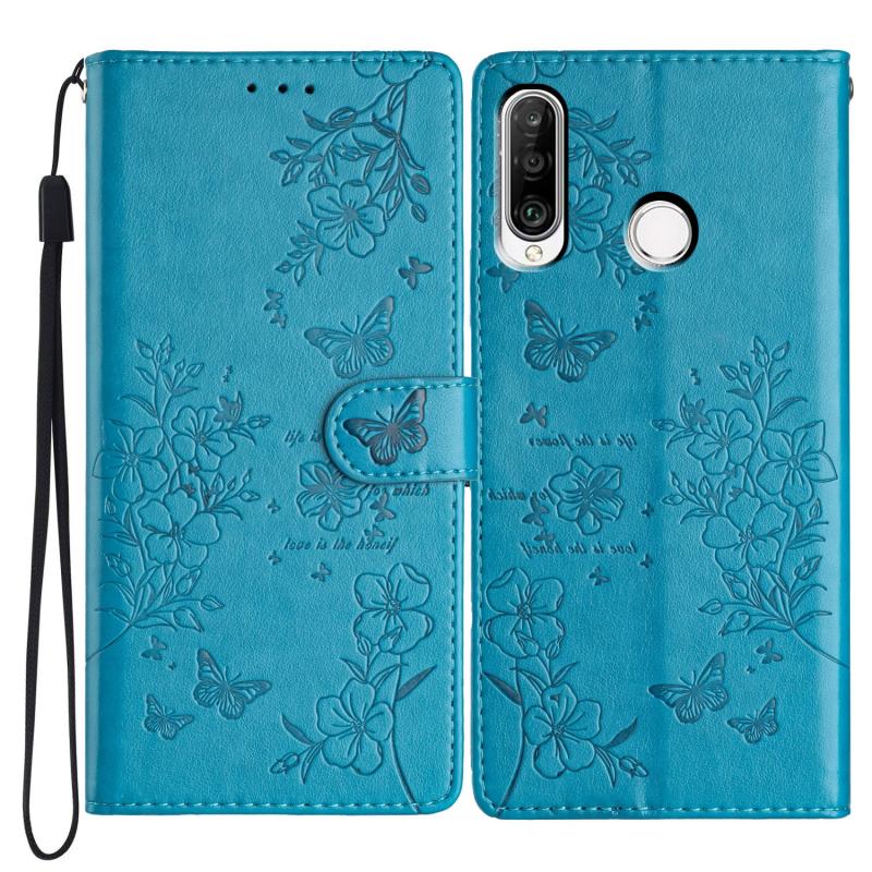 For Huawei P30 lite Butterflies And Flowers Leather Phone Case(Blue)