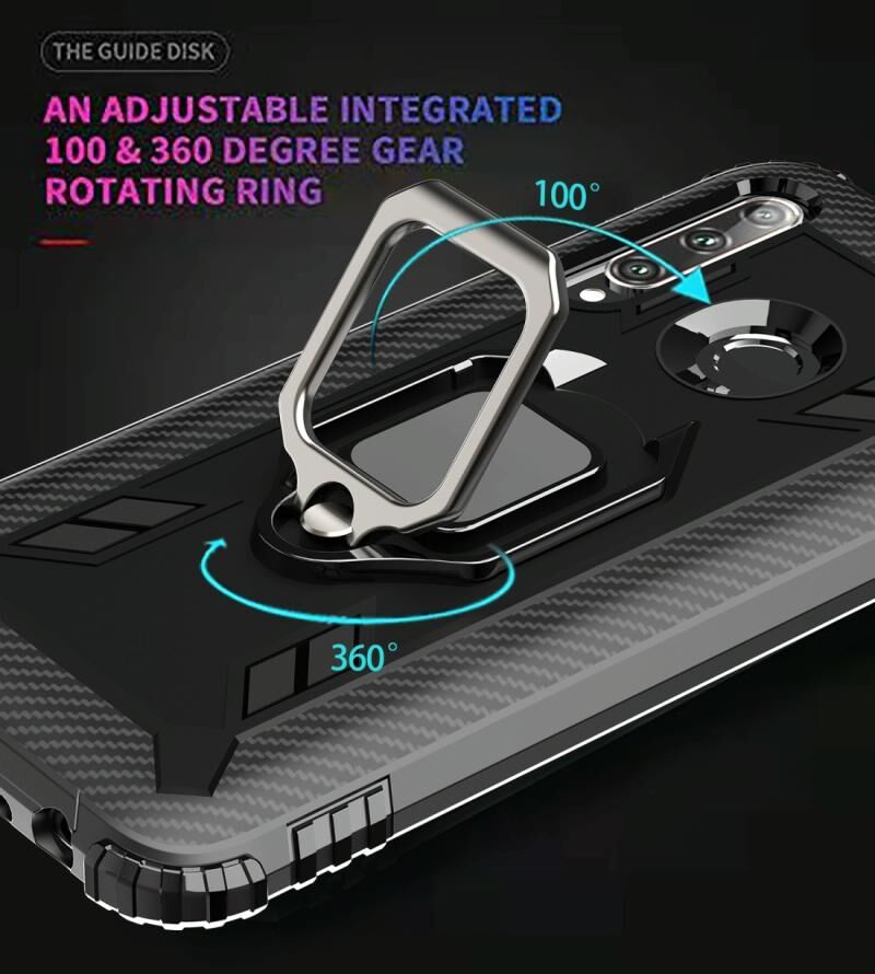 Για Huawei P30 Lite Carbon Fiber Προστατευτική θήκη με 360 μοίρες περιστρεφόμενη θήκη δακτυλίου (Μαύρο)