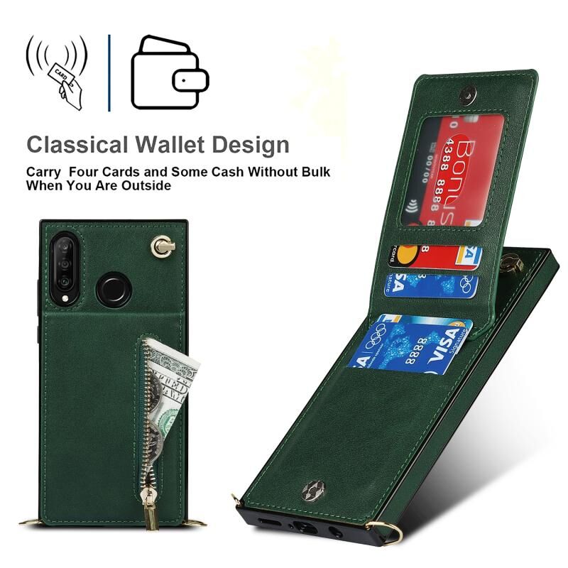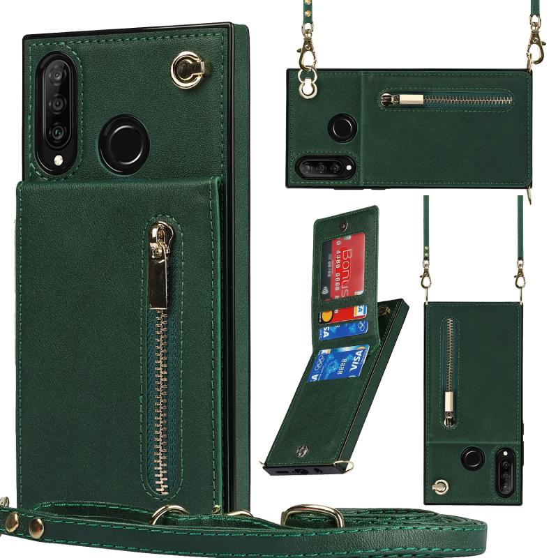 For Huawei P30 Lite Cross-body Zipper Square TPU+PU Back Cover Case with Holder & Card Slots & Wallet & Strap(Green)