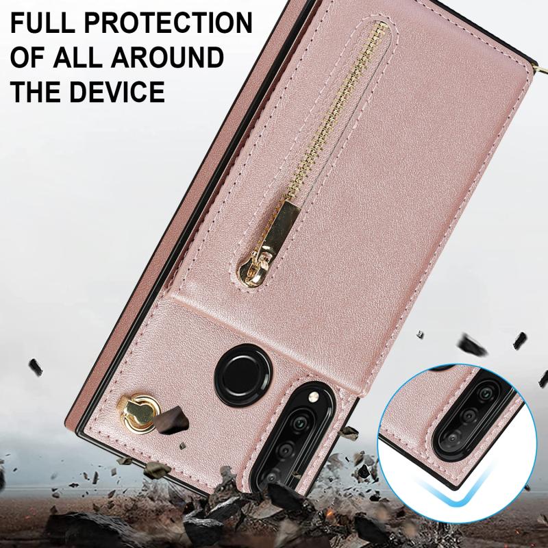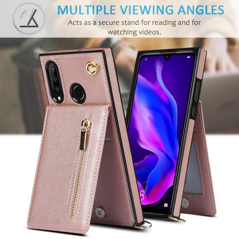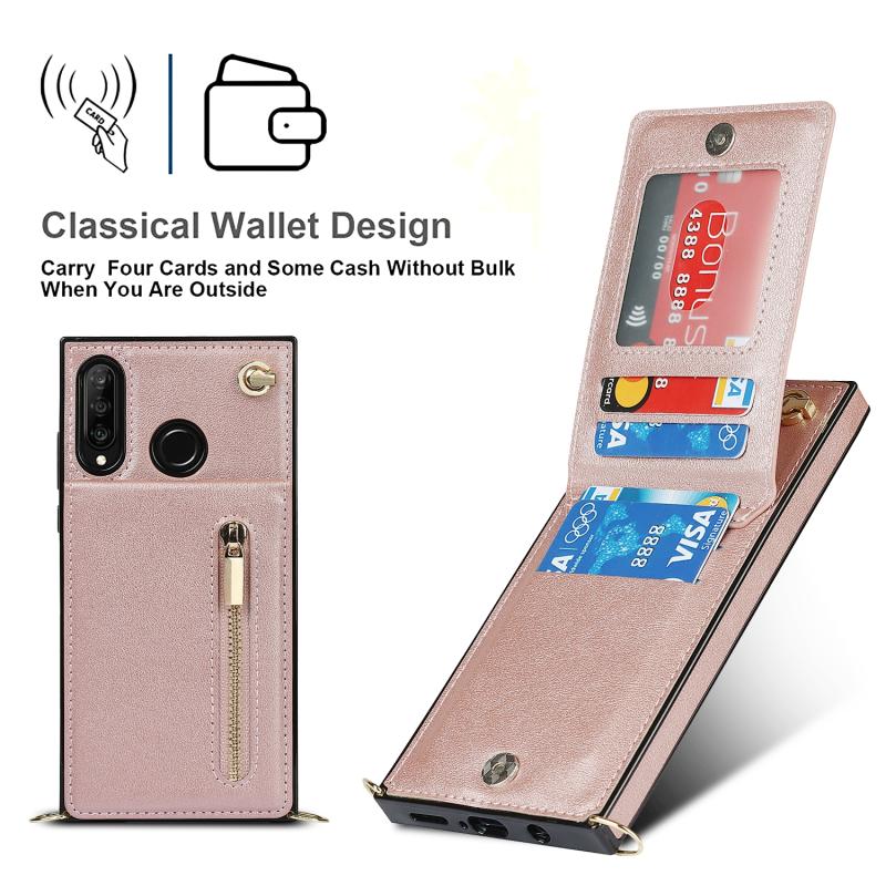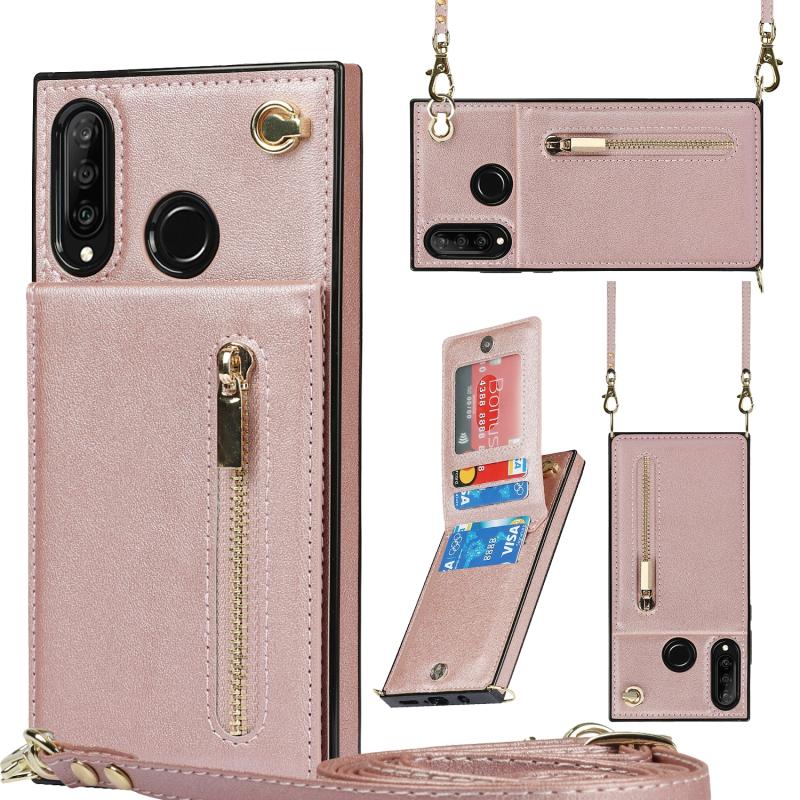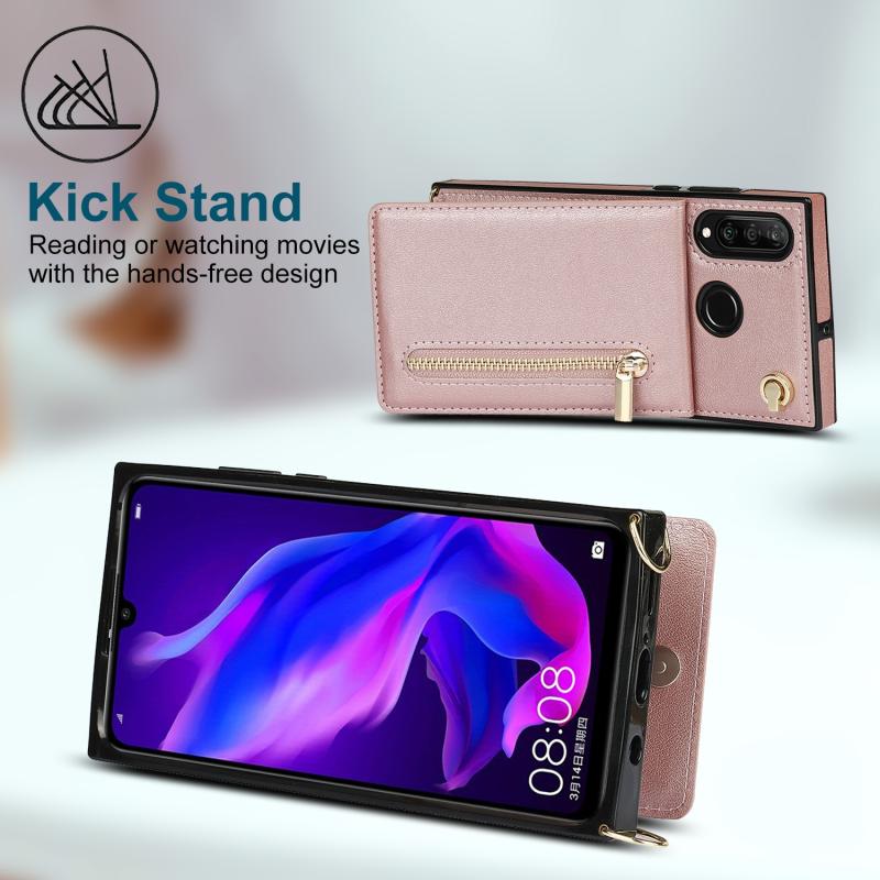 For Huawei P30 Lite Cross-body Zipper Square TPU+PU Back Cover Case with Holder & Card Slots & Wallet & Strap(Rose Gold)