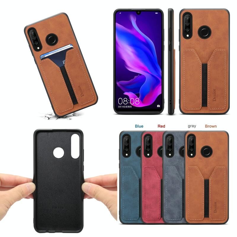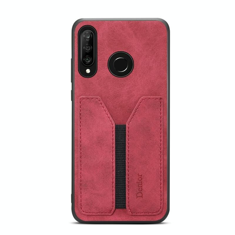 Για Huawei P30 Lite Denior DV ελαστική κάρτα PU πίσω κάλυμμα τηλέφωνο υπόθεση (κόκκινο) (Denior)