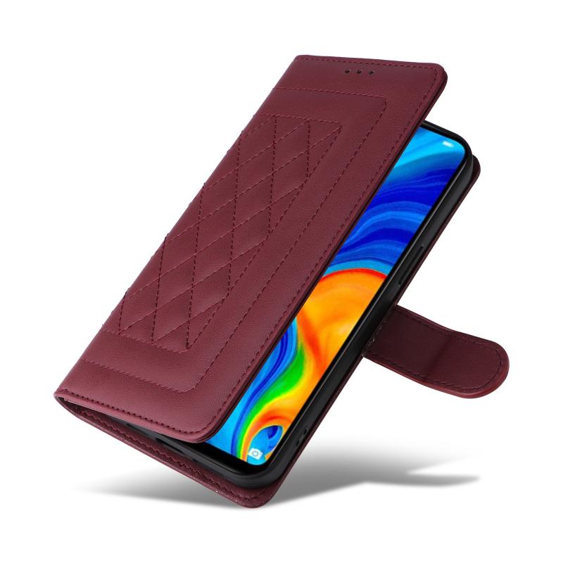 For Huawei P30 Lite Diamond Lattice Leather Flip Phone Case(Wine Red)