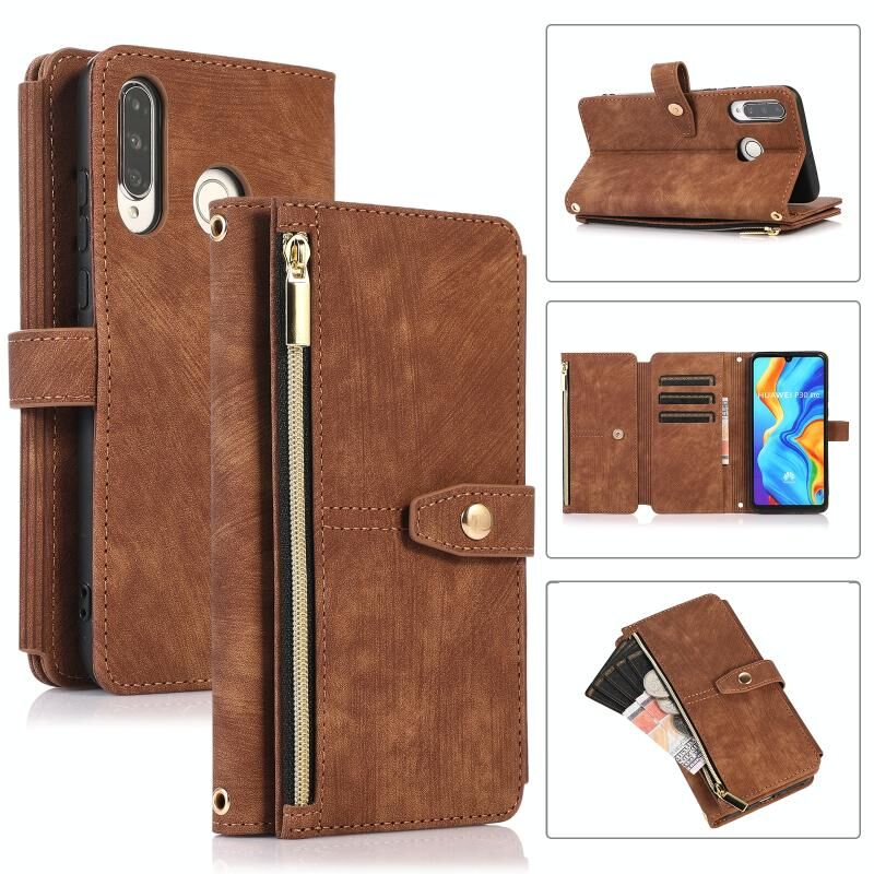 Για Huawei P30 Lite Dream 9-κάρτα πορτοφόλι φερμουάρ τσάντα δερμάτινη θήκη τηλεφώνου (καφέ)