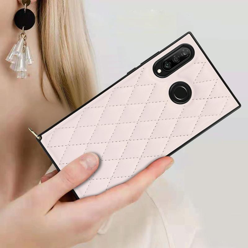 Για Huawei P30 Lite Κομψή Θήκη από Δέρμα Μικροϊνών με Ρομβικό Σχέδιο + TPU Αντικραδασμική με Αλυσίδα Λουριού Χιαστί (Μωβ)