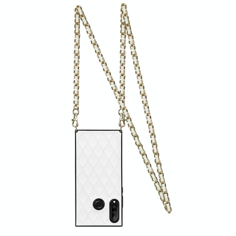 Για Huawei P30 Lite Κομψή Θήκη από Δέρμα Μικροϊνών με Ρομβικό Σχέδιο + TPU Αντικραδασμική με Αλυσίδα Λουριού Χιαστί (Μωβ)