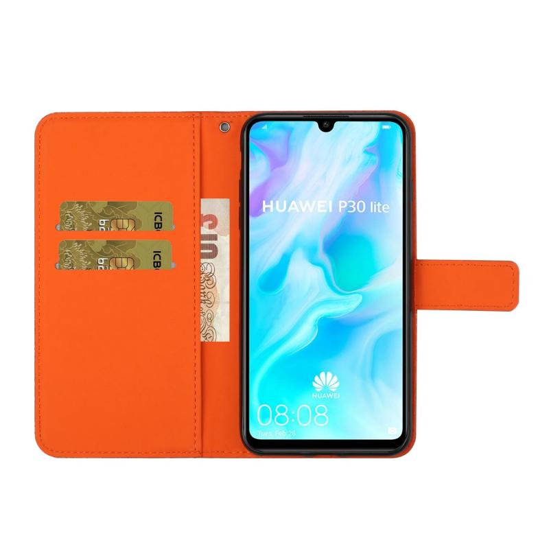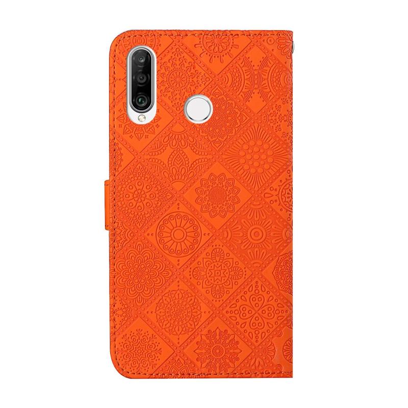 Θήκη Huawei P30 lite σε στυλ εθνοτικού σχεδίου με ανάγλυφο σχέδιο, οριζόντια, από δέρμα με βάση στήριξης & θήκες για κάρτες & πορτοφόλι & κορδόνι (Λευκό)