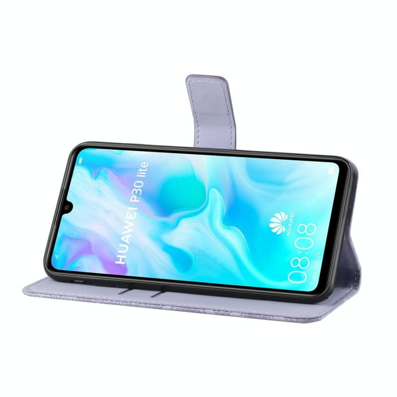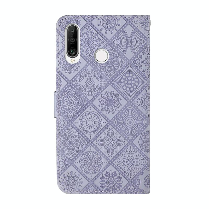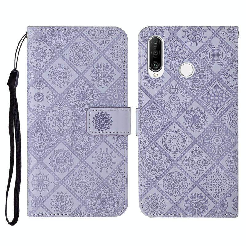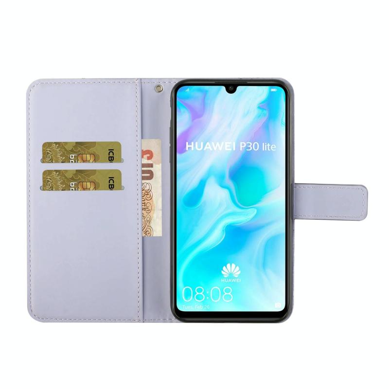 Θήκη Huawei P30 lite σε στυλ εθνοτικού σχεδίου με ανάγλυφο σχέδιο, οριζόντια, από δέρμα με βάση στήριξης & θήκες για κάρτες & πορτοφόλι & κορδόνι (Λευκό)