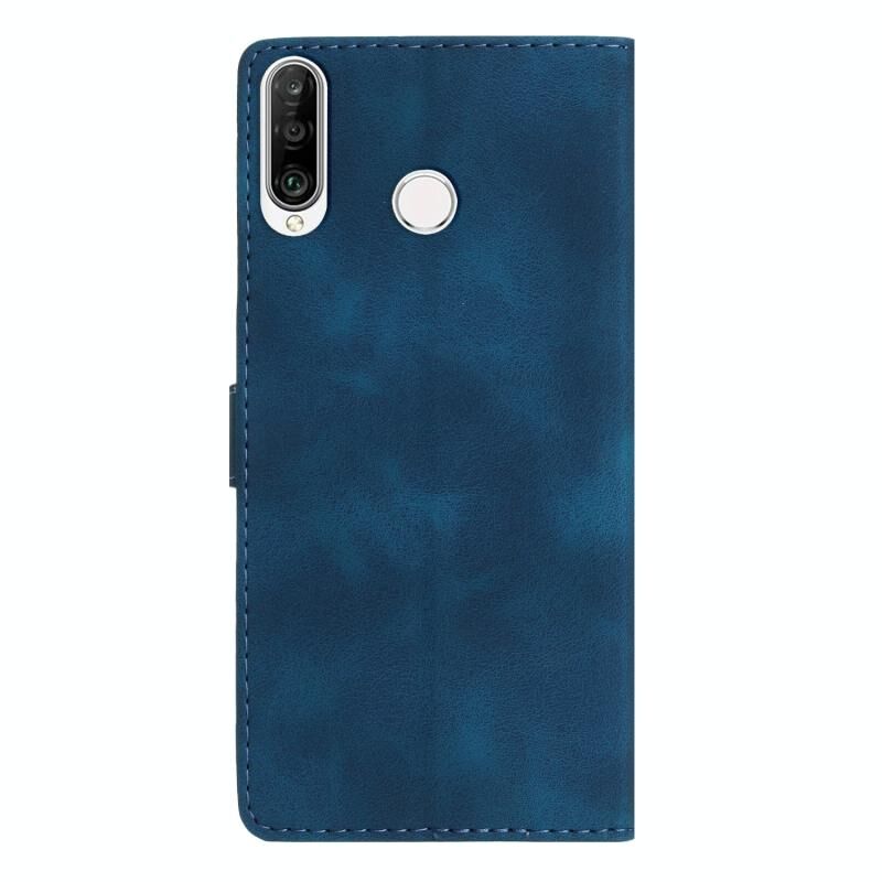 Για Huawei P30 lite λουλούδι πεταλούδα ανάγλυφο μοτίβο δερμάτινη θήκη τηλεφώνου (μπλε)