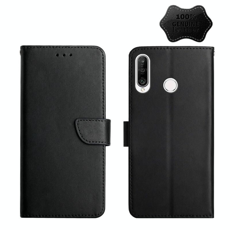 For Huawei P30 Lite Genuine Leather Fingerprint-proof Horizontal Flip Phone Case(Black)