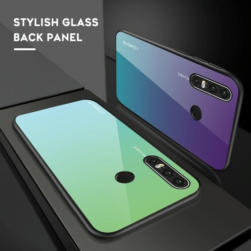 Για Huawei P30 Lite Βαθμιδωτό χρώμα γυάλινη θήκη (κόκκινο μπλε)