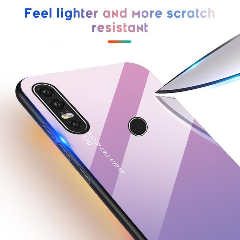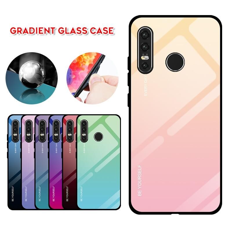 Για Huawei P30 Lite Κλιμακωτή γυάλινη θήκη χρώματος (κίτρινο)