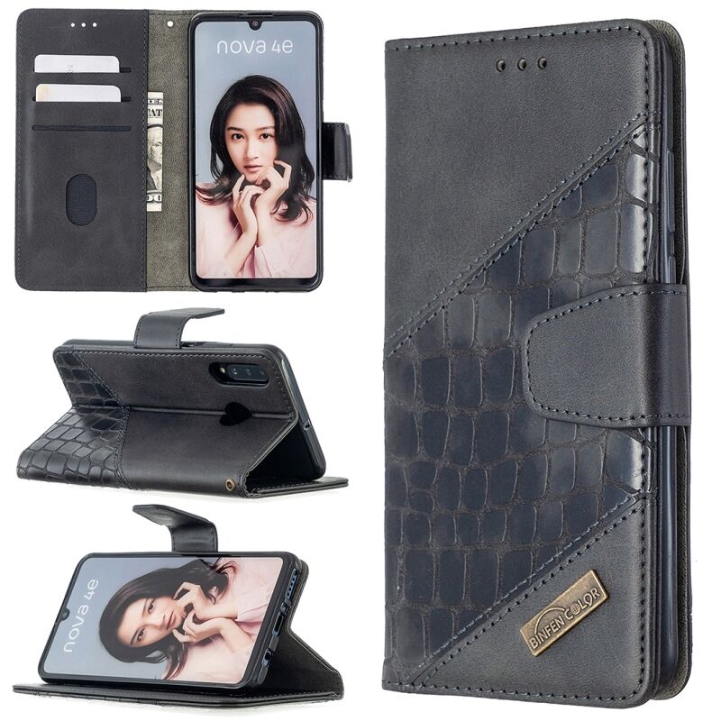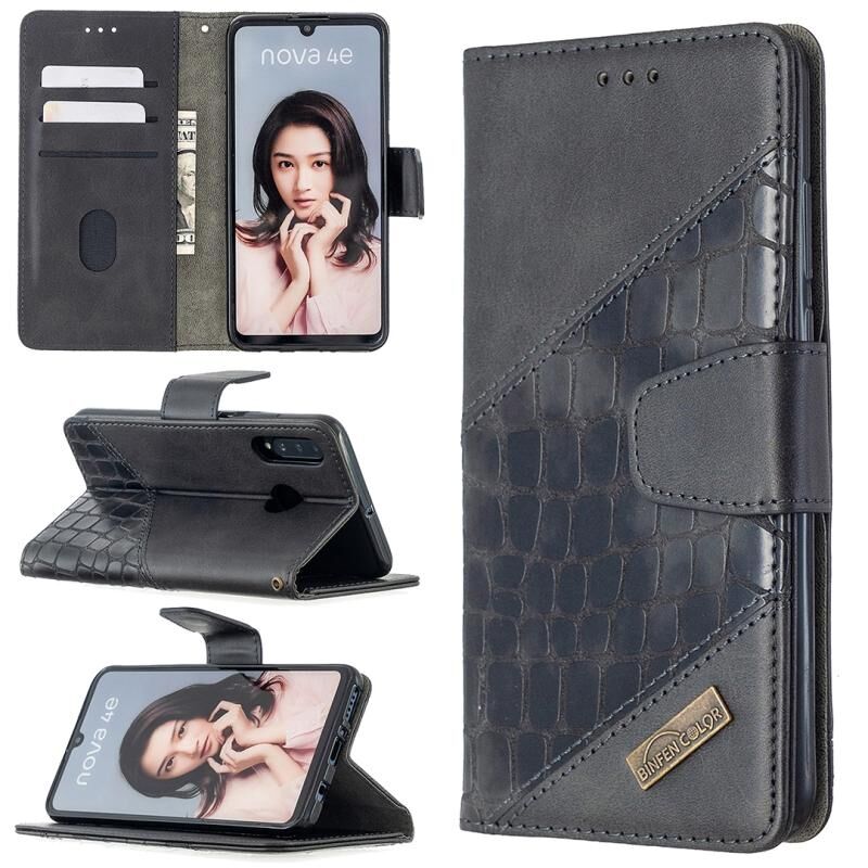 Για το Huawei P30 Lite Matching Color Crocodile Texture Horizontal Flip PU Leather Case με θήκη & υποδοχές καρτών & πορτοφόλι (Μαύρο)