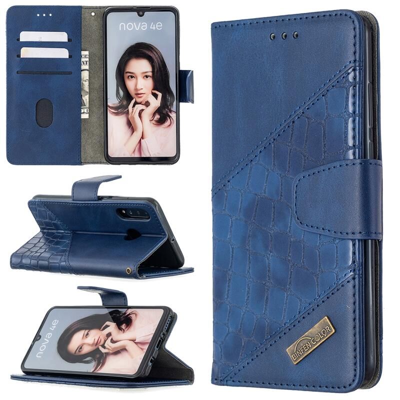 Για το Huawei P30 Lite Matching Color Crocodile Texture Horizontal Flip PU Leather Case με θήκη & υποδοχές καρτών & πορτοφόλι (μπλε)