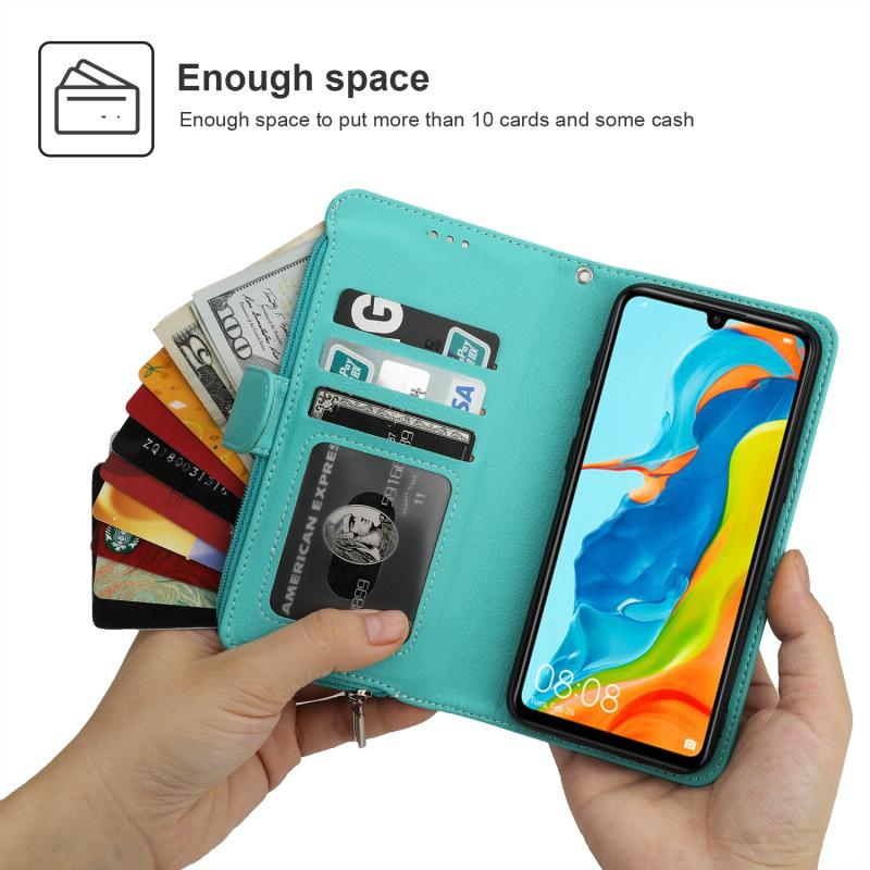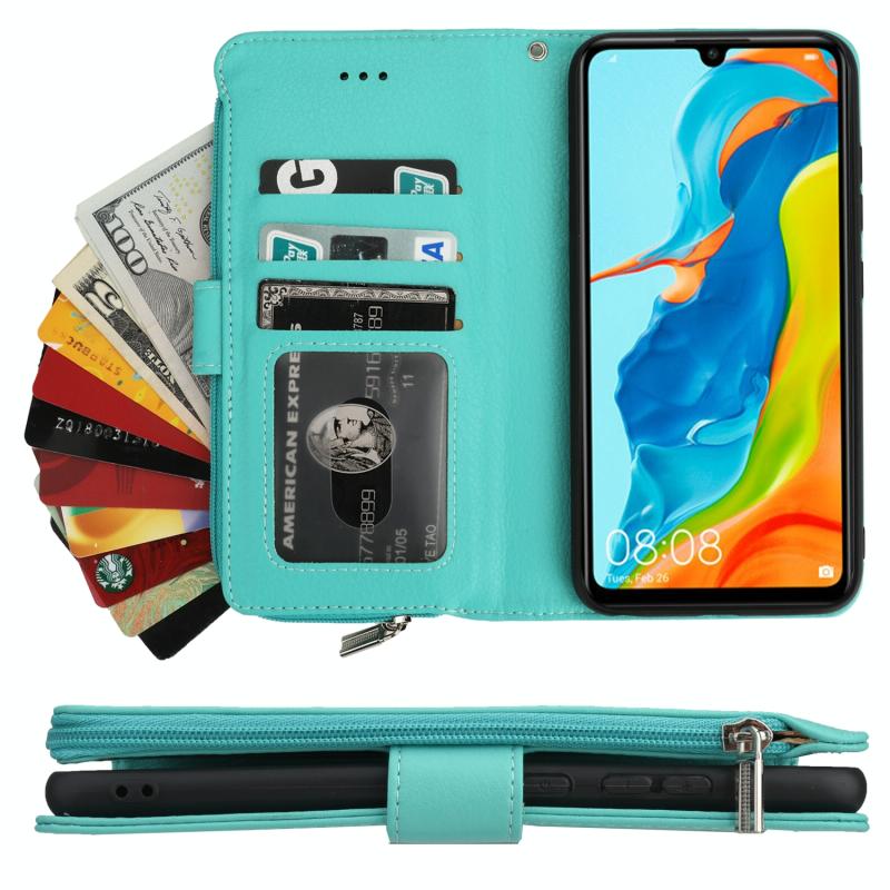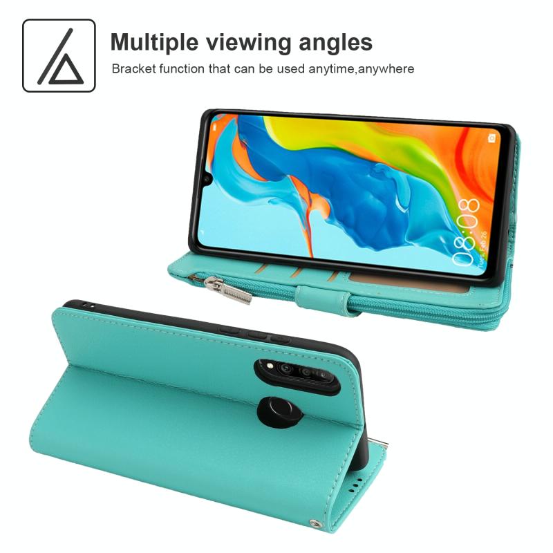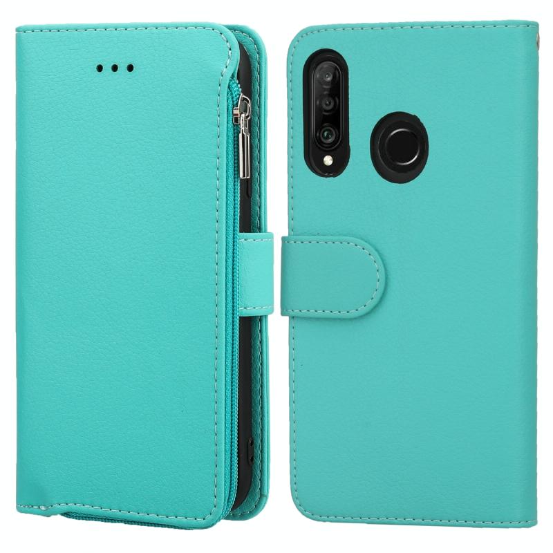 For Huawei P30 Lite Microfiber Zipper Horizontal Flip Leather Case(Green)