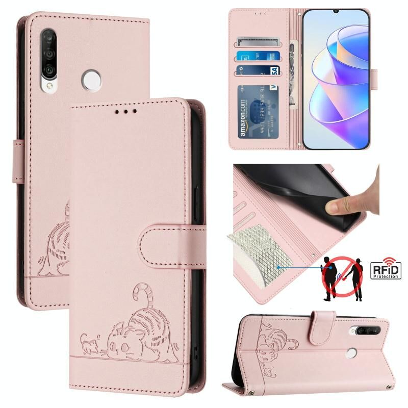 Θήκη τηλεφώνου από δέρμα με ανάγλυφο σχέδιο γάτας και ποντικού για Huawei P30 lite/nova 4e με λουρί (Μέντας Πράσινο)