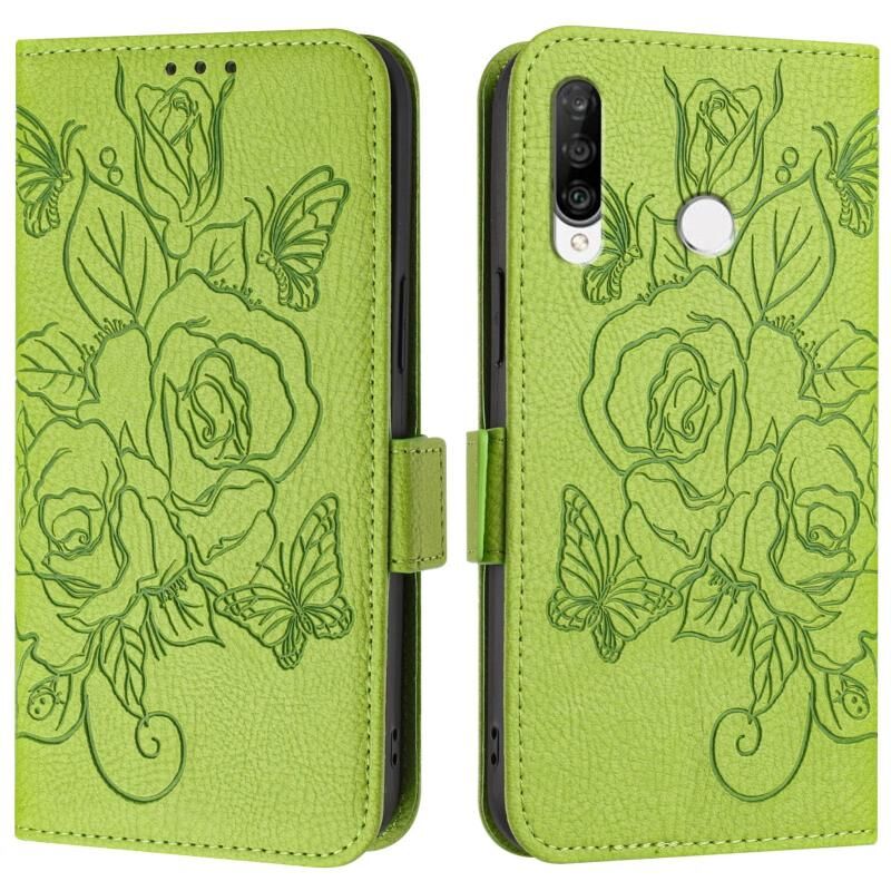 Για Huawei P30 Lite / nova 4e ανάγλυφο Rose RFID Anti-theft Δερμάτινη θήκη τηλεφώνου (Πράσινο)