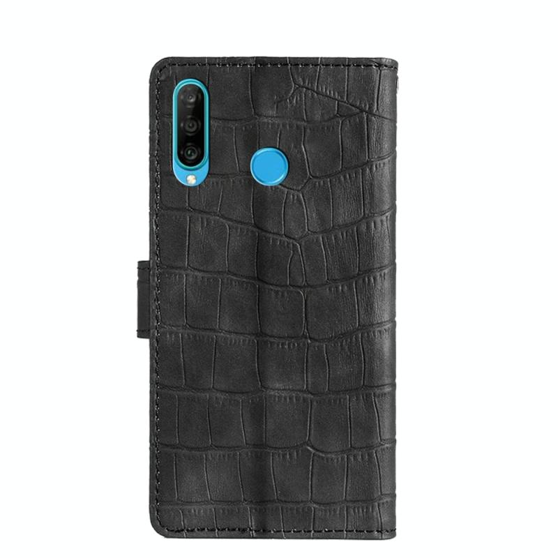 Θήκη για Huawei P30 Lite/nova 4e με υφή δέρματος κροκόδειλου, μαγνητικό κούμπωμα, οριζόντια αναδιπλούμενη από δερματίνη PU με βάση στήριξης & θήκες για κάρτες & πορτοφόλι (Μαύρο)