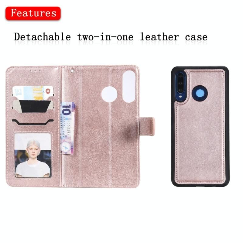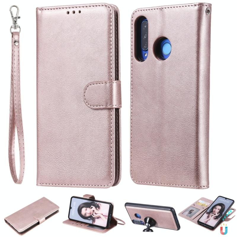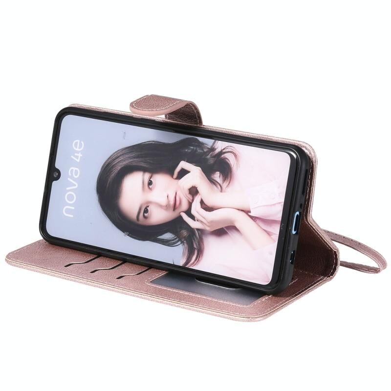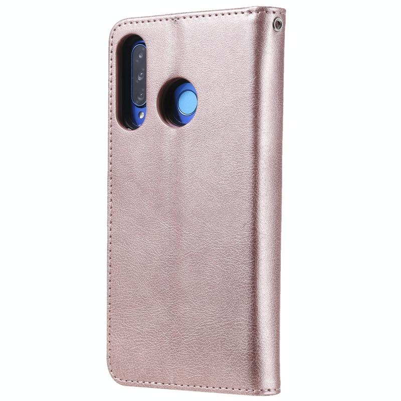 Για Huawei P30 Lite / nova 4e Στερεόχρωμη Θήκη Προστασίας Οριζόντιας Αναδίπλωσης με Στήριξη & Θήκες Καρτών & Πορτοφόλι & Κορνίζα Φωτογραφιών & Λουρί (Μωβ)