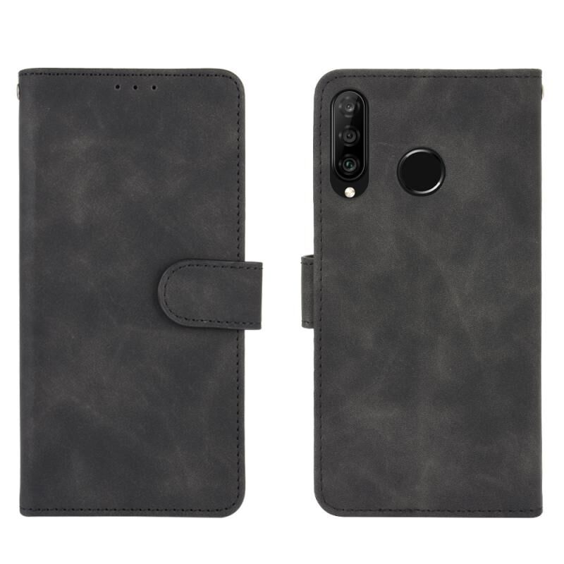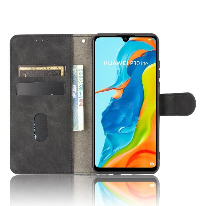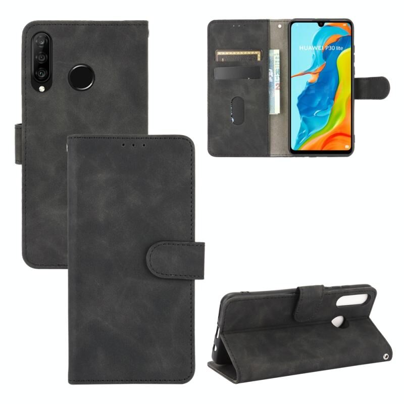 Για Huawei P30 Lite / nova 4e Αμιγές χρώμα δέρματος αίσθηση μαγνητική πόρπη οριζόντια Flip μοσχάρι υφή PU δέρμα υπόθεση με κάτοχο & υποδοχές καρτών & πορτοφόλι (μαύρο)