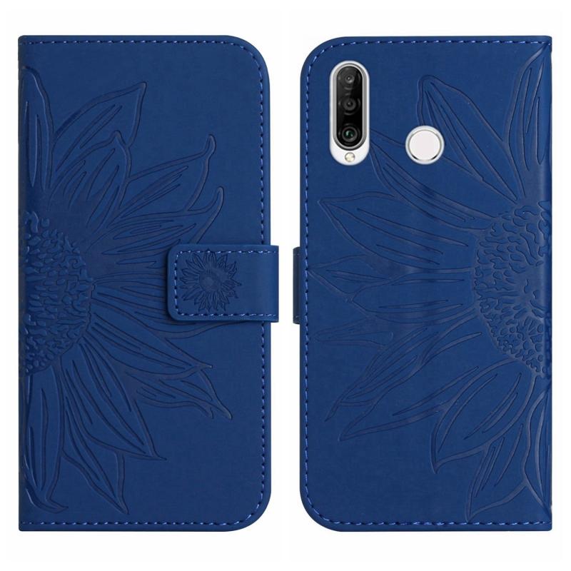Θήκη τηλεφώνου Huawei P30 Lite με αίσθηση δέρματος, σχέδιο ηλίανθου, τύπου flip με λουρί (Κόκκινο κρασί)